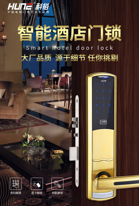 科裕酒店鎖,自建36000平方米大型工業(yè)園,自建產(chǎn)品實驗室,配套完善的生產(chǎn)設(shè)備,集產(chǎn)品研發(fā)、生產(chǎn)、銷售、維護于一體,是大型智能門鎖生產(chǎn)商。自1993年成立以來,專注智能鎖行業(yè)29年,依托自身技術(shù)優(yōu)勢并順應(yīng)市場發(fā)展趨勢,始終專注于智慧酒店系統(tǒng)整體解決方案,并重點開發(fā)了酒店聯(lián)網(wǎng)門鎖系統(tǒng)。