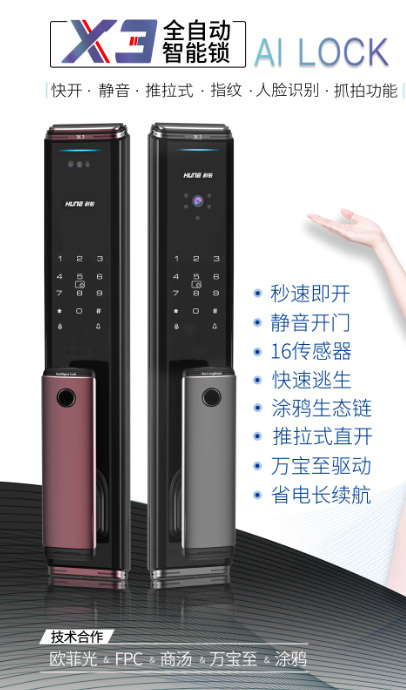 不久前,科裕將指紋鎖進行升級,重磅推出人臉識別智能門鎖X3,“人臉識別+可視+靜音”X3推拉式全自動智能鎖新品,匯集了科裕28年的設計精髓,外觀設計靈巧精致,簡約時尚,不僅呈現在智能安防升級,更呈現在設計、硬件、軟件等多方面,豐富產品功能的同時,保持一如既往的上乘品質。明明可以靠顏值,卻用鐵一般的事實證明,是個杠杠的實力派!