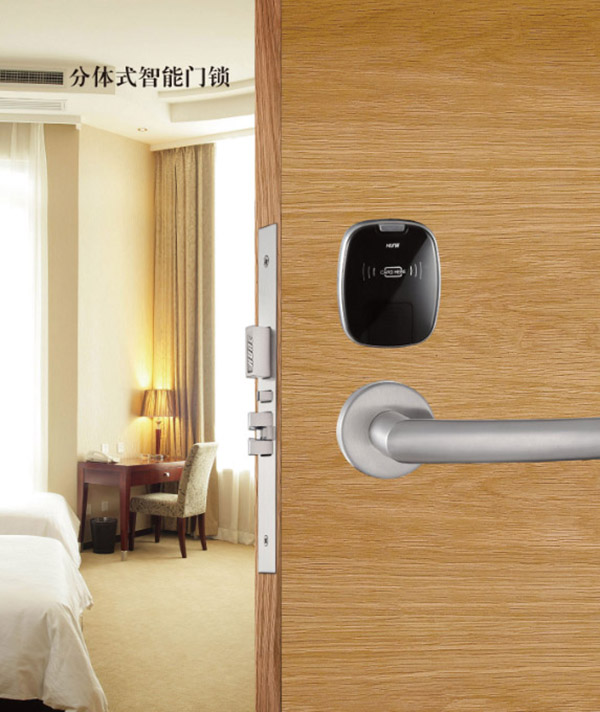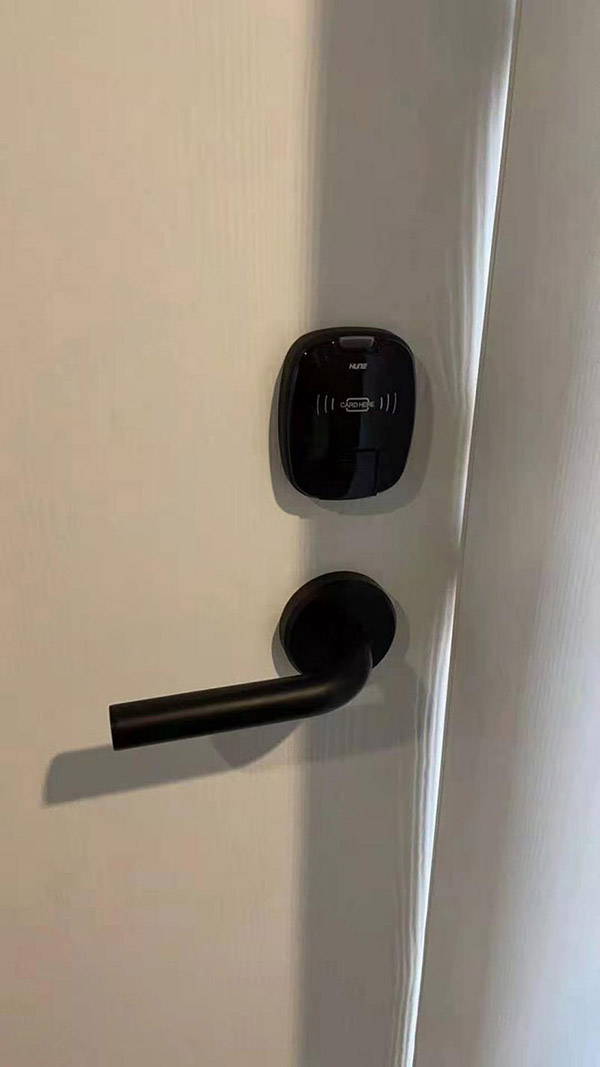 分體式智能門鎖的形狀款式和色彩都是千姿百態(tài),總有一款會(huì)是你愛(ài)的樣子。像泰州逸安大酒店這樣,在白色的門的設(shè)計(jì)下黑色的分體門鎖,絕對(duì)是不錯(cuò)的選擇。