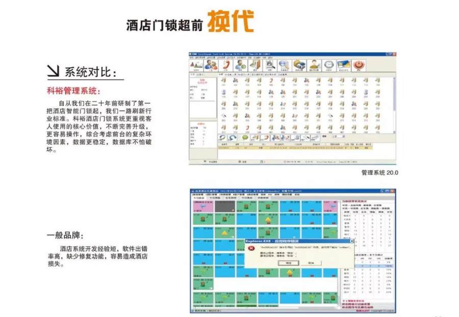 四、【提供數(shù)據(jù)接口與國(guó)內(nèi)外酒店管理軟件無縫連接】:科裕酒店鎖管理軟件已與國(guó)內(nèi)外大多數(shù)酒店管理軟件成功對(duì)接,并獲著名的microsFIDELIO/Operai(德國(guó)酒店管理軟件)的對(duì)接許可,不會(huì)產(chǎn)生因?qū)訂栴}進(jìn)行的軟件維護(hù)工作。