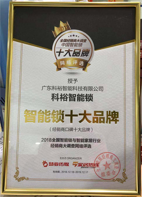 科裕智能鎖,始于1993年,是有超過(guò)20年智能鎖行業(yè)經(jīng)驗(yàn)的國(guó)內(nèi)較早的大型智能門鎖生產(chǎn)商,廣東省高新技術(shù)企業(yè),被廣東省科技廳授予廣東省多功能智能鎖具工程技術(shù)研究中心,生產(chǎn)總部設(shè)在廣東省珠江三角洲的中國(guó)“第一僑鄉(xiāng)”江門市。公司集產(chǎn)品研發(fā)、生產(chǎn)、銷售、維護(hù)于一體。企業(yè)憑借多年來(lái)智能門鎖的發(fā)展,累獲多個(gè)行業(yè)獎(jiǎng)項(xiàng),被廣東省市場(chǎng)監(jiān)督局連續(xù)過(guò)10年授予“守合同重信用企業(yè)”。