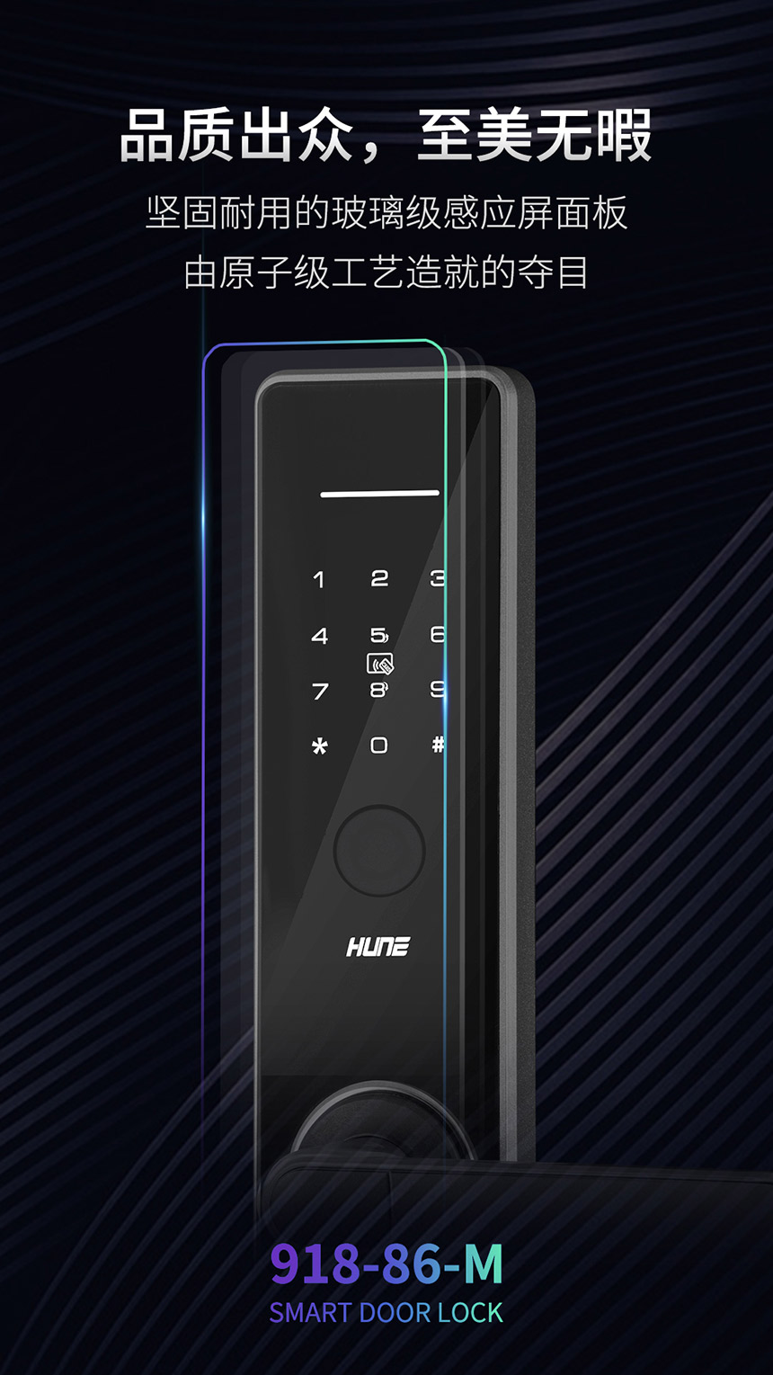 1、外觀簡約時尚,設(shè)計層次豐富,金屬與亞克力的搭配更具格調(diào),人機工程學(xué)一握開把手設(shè)計,使用舒適,符合時代潮流雙軸套游離把手有效防松動,,多種開鎖方式,可手機遠(yuǎn)程操控, 科技感十足;