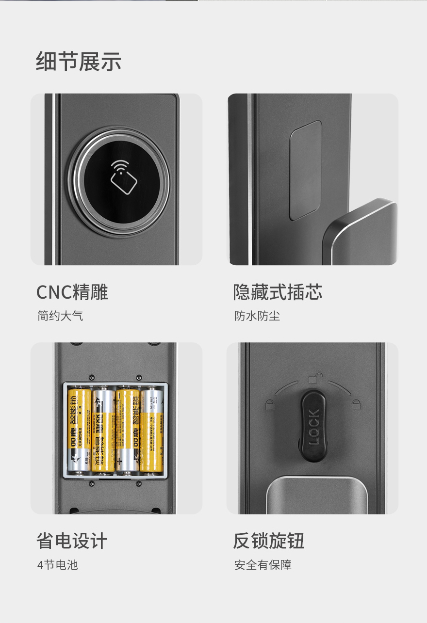 1、加厚加重型美標鎖體,全銅鎖芯,國際品牌<萬寶至>精密離合電機,鎖體保修六年