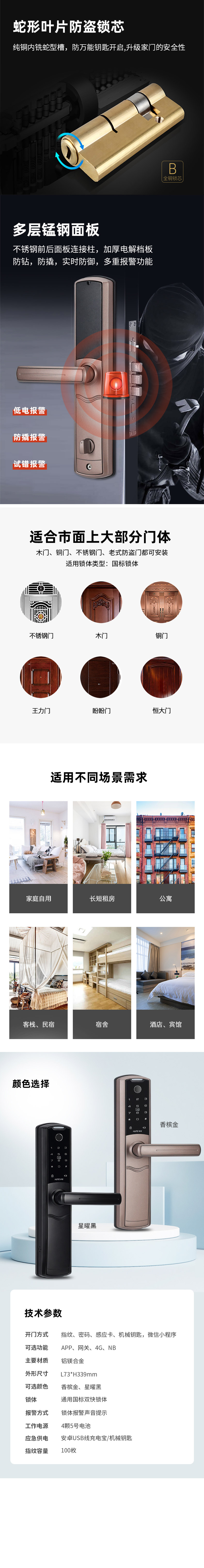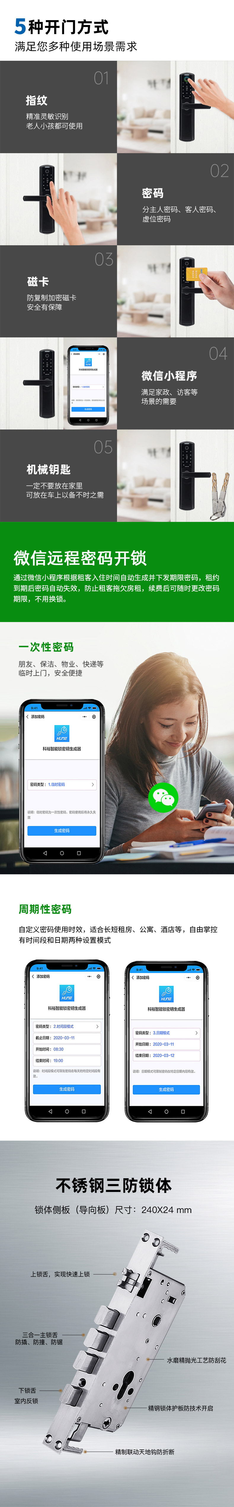 開門方式:指紋,密碼,感應(yīng)卡,機(jī)械鑰匙